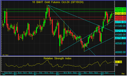 GF10V24 ช่วงคำวานนี้ตลาดกลับมากังวลว่า อิสราเอลมีแผนโจมตีแหล่งน้ำมันของอิหร่าน แต่ความกังวลดังกล่าวคลายลงหลัง อิสราเอลกล่าวว่า จะไม่โจมตีแหล่งน้ำมันหรือโรงงานนิวเคลียร์ของอิหร่านแต่อย่างใด แนะนำรอ Long สัญญา GF10V24 ที่ 42,000 บาท โดยมีเป้าทำกำไรที่ 42,300 บาท และตัดขาดทุนหากทะลุแนวรับที่ 41,850 บาท
