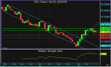 วันนี้ราคา USDV24 อาจผันผวน เนื่องจากมีการประกาศดอกเบี้ยจาก กนง. ซึ่งตลาดคาดว่าจะยังไม่มีการปรับลดลงในครั้งนี้ แต่ประเมินว่ามีความเป็นไปได้ที่ กนง. อาจปรับลดช่วง ธ.ค. แนะนำรอ Short สัญญา USDV24 ที่ 33.40 บาท โดยมีเป้าหมายทำกำไรที่ 33.00 บาท และตัดขาดทุนหากทะลุระดับ 33.55 บาท