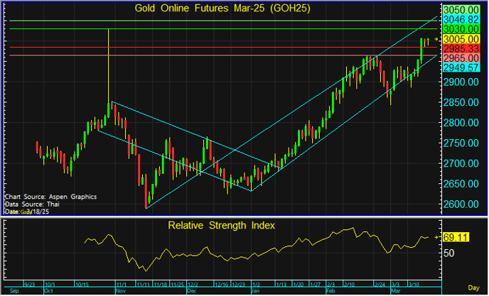 GOH25 ยังคงสามารถซื้อขายเหนือแนวรับสำคัญที่ระดับ 2,985 ดอลลาร์ได้อย่างแข็งแกร่ง จึงกลับมาแนะนำไล่เปิด Long โดยมีเป้าหมายทำกำไรที่ระดับ 3,030 ดอลลาร์ และตัดขาดทุนหากราคาหลุดแนวรับแรกที่ระดับ 2,985 ดอลลาร์