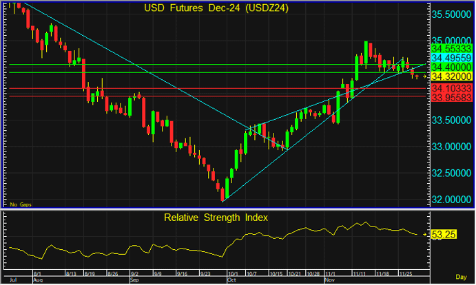 เช้านี้ USDZ24 หลุดแนวรับสำคัญลงมา แต่ประเมินว่าราคาอาจไม่ได้ปรับตัวลงแรง โดยแนวรับสำคัญที่ 34.10 บาท ยังดูแข็งแกร่ง และน่าจะยังเป็นแนวรับที่ส่งราคากลับขึ้นไปได้ จึงยังแนะนำซื้อขายในกรอบ 34.10-34.40 บาท โดยเปิด Short หากราคาขึ้นทดสอบแนวต้านที่ 34.40 บาท และเปิด Long หากราคาลงทดสอบแนวรับที่ 34.10 บาท