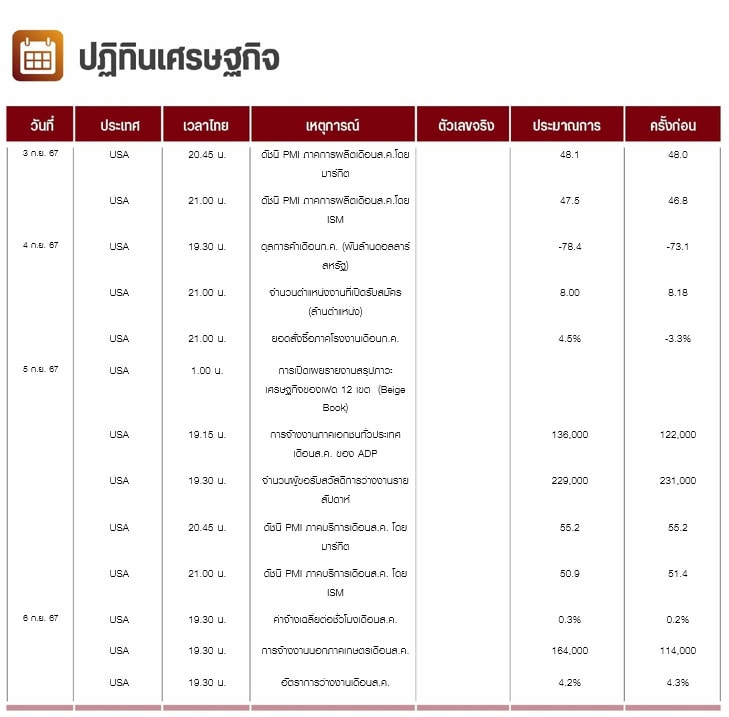 คืนนี้สหรัฐจะเปิดเผยดัชนี PMI ภาคการผลิตเดือนส.ค.โดย ISM ตลาดคาดว่าจะเพิ่มขึ้นสู่ระดับ 47.5 จาก 46.8 ในเดือนก.ค.