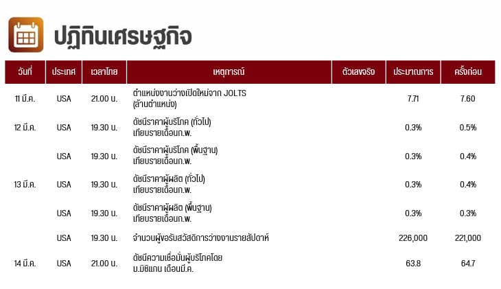 สัปดาห์นี้สหรัฐจะเปิดเผยตัวเลขเงินเฟ้อได้แก่ ดัชนีราคาผู้บริโภคและดัชนีราคาผู้ผลิตเดือนก.พ.