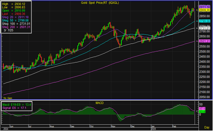 - ปิดตลาดที่ระดับ 2,909 ดอลลาร์