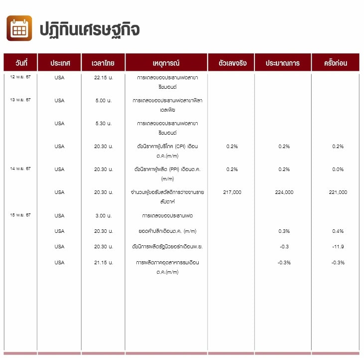 คืนนี้สหรัฐจะเปิดเผยยอดค้าปลีกเดือนต.ค. ดัชนีการผลิตรัฐนิวยอร์กเดือนพ.ย. และการผลิตภาคอุตสาหกรรมเดือนต.ค.
