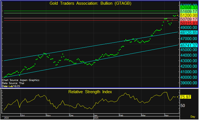 ราคาทองคำในประเทศ ยังคงถูกกดดันด้วยค่าเงินบาทที่กลับมาแข็งค่าขึ้นแรง แต่ยังคงประเมินว่าเป็นระดับที่น่าแบ่งขายทำกำไร โดยแนะนำใช้กลยุทธ์เชิงรับรอเข้าซื้อสะสมที่ 50,700 บาท โดยมีเป้าทำกำไรที่ 51,600 บาท และตัดขาดทุนหากราคาทะลุแนวรับที่ 50,300 บาทลงไป
