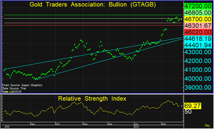 ราคาทองคำแท่ง ยังเคลื่อนไหวอยู่ในกรอบเดิมที่ระดับ 46,300-47,000 บาท โดยประเมินว่าราคาอาจมีโอกาสลงไปปิด Gap ที่โดดขึ้นมาจากระดับ 45,600 บาท จึงแนะนำใช้กลยุทธ์เชิงรับในการเข้าซื้อ หากเริ่มมีแรงซื้อเข้าหนุนจากแนวรับ จึงทยอยเข้าซื้อตาม