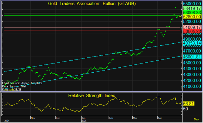 ราคาทอง Spot ฟื้นตัวขึ้นแรง $60 ปิดที่ $3,347 หลังปรับลดลงแรงอย่างต่อเนื่อง เนื่องจากดอลลาร์อ่อนค่าลง การเจรจาการค้าระหว่างสหรัฐและจีนที่คาดยืดเยื้อ ซึ่งนายเหอ หย่าตง โฆษกกระทรวงพาณิชย์ของจีน กล่าวปฏิเสธข่าวลือเกี่ยวกับความคืบหน้าในการเจรจาการค้าระหว่างจีนและสหรัฐ โดยระบุว่าข่าวดังกล่าวไม่มีความจริงแต่อย่างใด ก่อนหน้านี้นายสก็อตต์ เบสเซนต์ รัฐมนตรีคลังสหรัฐ ระบุว่า มีโอกาสที่สหรัฐและจีนจะบรรลุข้อตกลงการค้าครั้งใหญ่ และทรัมป์ส่งสัญญาณปรับลดภาษีนำเข้าสินค้าจากจีน โดยสหรัฐจะลดอัตราภาษีนำเข้าสินค้าจากจีนลงอย่างมาก แต่ไม่ถึงระดับ 0% ส่วนผู้ขอสวัสดิการว่างงานเพิ่มขึ้น 6,000 ราย สู่ระดับ 222,000 ราย เท่ากับตลาด ทางด้านกองทุน SPDR ขายทอง 0.58 ตัน