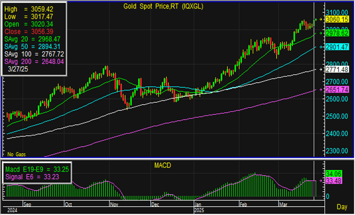 ราคาทองคำปรับตัวขึ้นทำ All-time high จากแรงหนุนความกังวลเกี่ยวกับความตึงเครียดด้านสงครามการค้าที่อาจรุนแรง หลังประธานาธิบดีโดนัลด์ ทรัมป์จะเรียกเก็บภาษีนำเข้ารถยนต์และรถบรรทุกขนาดเล็กในอัตรา 25% โดยจะมีผลบังคับใช้ในวันที่ 2 เม.ย. และการเรียกเก็บภาษีชิ้นส่วนรถยนต์จะเริ่มมีผลบังคับใช้ในวันที่ 3 เม.ย ขณะที่แคนาดาและฝรั่งเศสได้ประกาศจะใช้มาตรการตอบโต้กลับเช่นกัน ส่วนกองทุน SPDR ซื้อทอง 0.29 ตัน