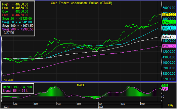 ราคาทองคำแท่งปรับตัวขึ้นเล็กน้อยเมื่อวานนี้ คาดว่าราคาทองคำแท่งมีแนวโน้มปรับตัวขึ้นได้ต่อในวันนี้ และเคลื่อนไหวเหนือ 49,000 บาท ตลาดกลับมาให้ความสนใจเกี่ยวกับสงครามการค้าที่อาจมีแนวโน้มรุนแรงในสัปดาห์หน้า หลังทรัมป์ลงนามภาษีนำเข้าสินค้าที่มีผลบังคับใช้ในวันที่ 2 เม.ย.