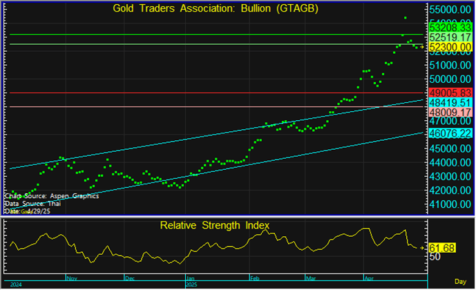 แนวต้าน : 52,500 และ 53,200 บาท
