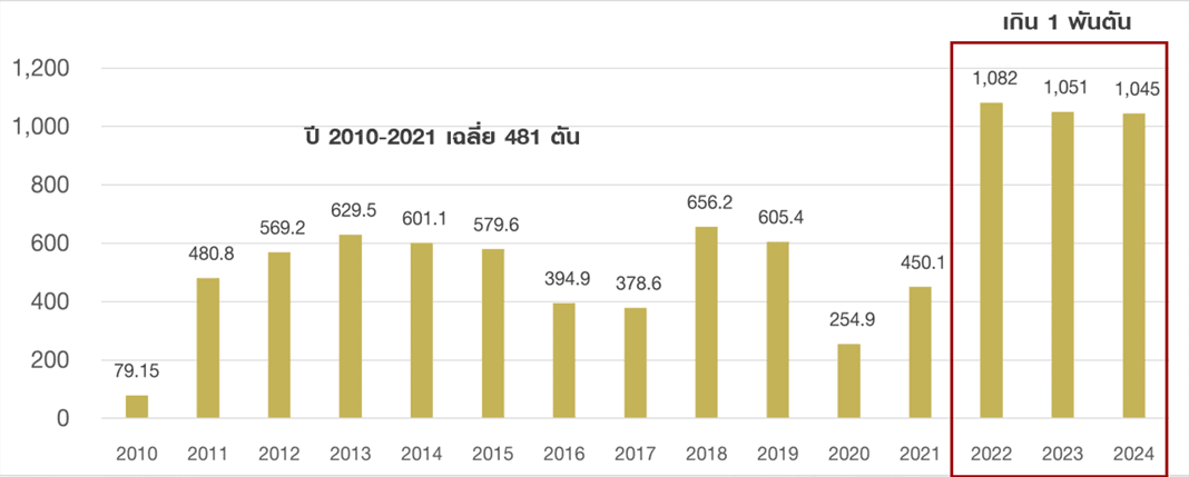 ในปี 2022 เป็นปีแรกที่ธนาคารกลางทั่วโลกเข้ามาซื้อทองคำในเงินทุนสำรองเกิน 1,000 ตัน เพิ่มขึ้นกว่าเท่าตัวจากปี 2021 และในปีที่แล้วธนาคารกลางทั่วโลกเข้าซื้อทองคำเกิน 1,000 ตัน ติดต่อกันเป็นปีที่ 3 รวม 1,045 ตัน ทำให้ธนาคารกลางมีบทบาทสำคัญในการขับเคลื่อนราคาทองคำ เนื่องจากสัดส่วนความต้องการทองคำจากธนาคารกลางเพิ่มขึ้นอย่างมีนัยสำคัญจาก 10% ในปี 2021 เป็น 23% ในปี 2025