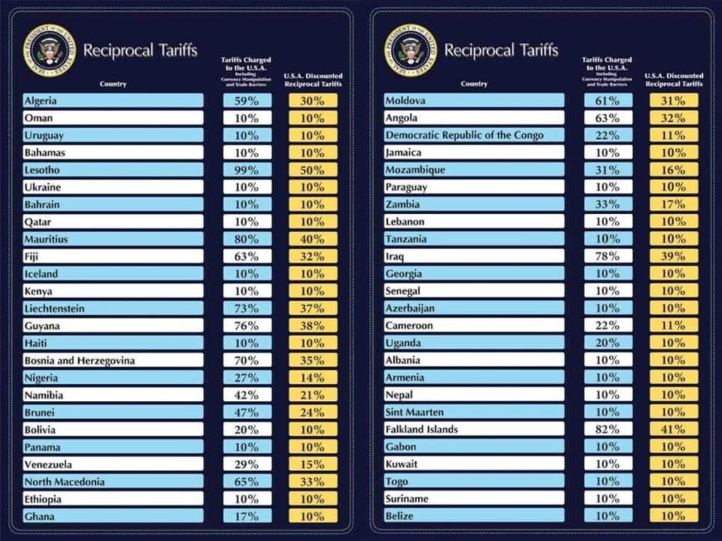 สหรัฐฯ เก็บภาษีศุลกากรตอบโต้ต่อทุกประเทศทั่วโลก