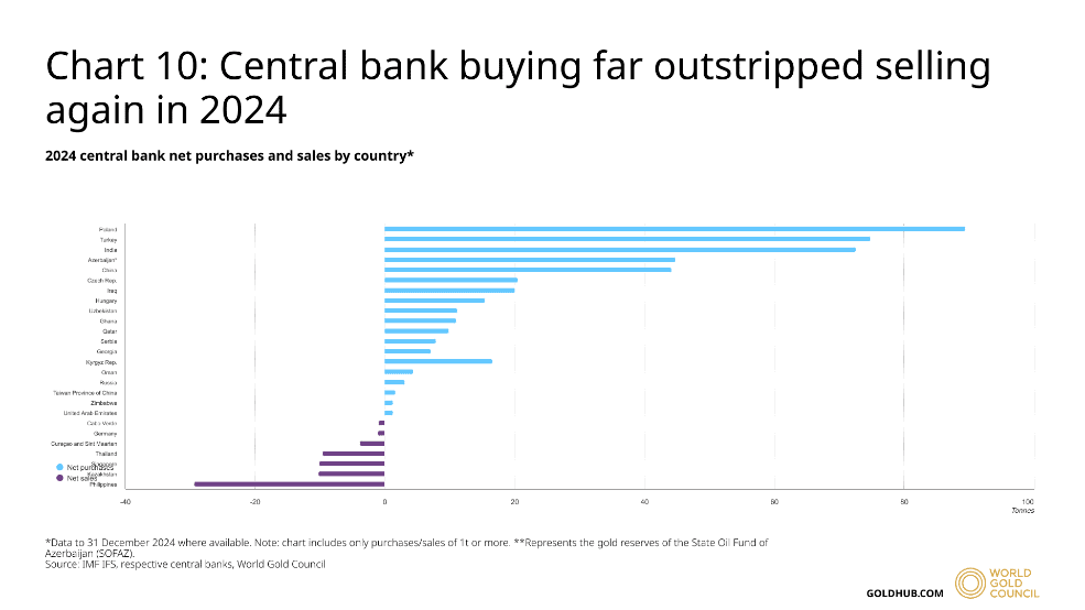 5 อันดับ ธนาคารกลางที่มีการเข้าซื้อมากที่สุดในปี 2024 ได้แก่