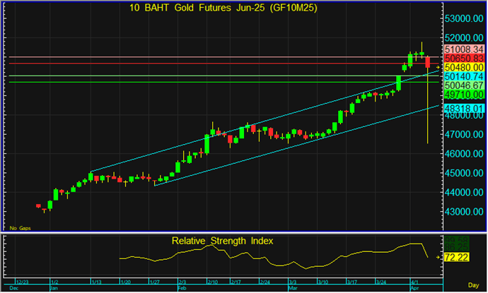 ราคา GF10M25 ที่เริ่มย่อตัวลงมา ยังประเมินว่าอาจเหลือ Downside อีกพอสมควร จึงแนะนำไล่เปิด Short โดยมีเป้าหมายทำกำไรที่ระดับ 50,050 บาท และตัดขาดทุนหากราคาทะลุแนวต้านแรกที่ระดับ 50,650 บาท ขึ้นไป