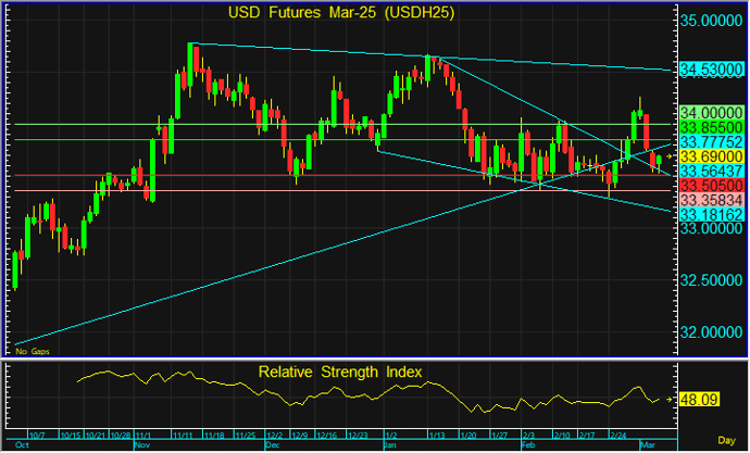 USDH25 ย่อตัวลงมาจนทดสอบแนวรับ ซึ่งยังคงมีแรงซื้อกลับ ประเมินว่ามีโอกาสที่ราคาจะฟื้นตัวขึ้นแตะแนวต้านที่ 33.85 บาทอีกครั้ง จึงแนะนำรอเปิด Short ที่แนวต้านดังกล่าว โดยมีเป้าหมายทำกำไรที่ 33.50 บาท และตัดขาดทุนหากราคาทะลุแนวต้านที่ระดับ 34.00 บาท