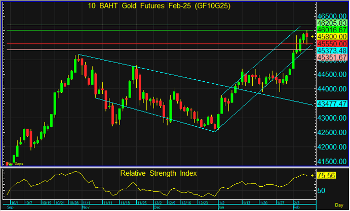 แนวต้าน : 46,000 และ 46,200 บาท
