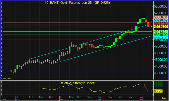 GF10M25 ที่ย่อตัวลงมา ประเมินว่าอาจยังเหลือ Downside อีกพอสมควร จึงแนะนำไล่เปิด Short โดยมีเป้าหมายทำกำไรที่ระดับ 49,200 บาท และตัดขาดทุนหากราคาทะลุแนวต้านแรกที่ระดับ 50,200 บาทขึ้นไป