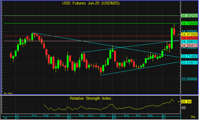 USDM25 ลงทดสอบแนวรับสำคัญที่ระดับ 34.40 บาท แต่ประเมินว่าอาจฟื้นตัวกลับจากแนวรับนี้ จึงแนะนำรอเปิด Long จากแนวรับที่ระดับ 34.35 บาท โดยมีเป้าทำกำไรที่ 34.75 บาท และตัดขาดทุนหากราคาหลุดแนวรับที่ระดับ 34.20 บาทลงไป