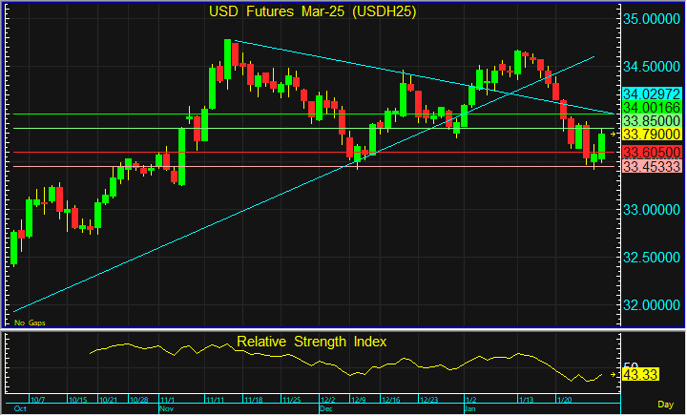 USDH25 ที่ฟื้นตัวกลับมาเริ่มเผชิญแรงขายที่ระดับแนวต้านสำคัญ แม้แนวโน้มจะยังไม่ชัดเจน แต่กลับมาแนะนำเสี่ยงเปิด Short สัญญา USDH25 ที่ 33.85 บาท โดยมีเป้าทำกำไรระยะสั้นที่ 33.60 บาท และตัดขาดทุนหากทะลุระดับ 34.00 บาท
