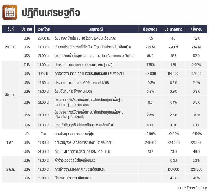ราคาทองโลกปรับตัวสูงขึ้นทำจุดสูงสุดในช่วงบ่ายที่ระดับ 3,263 ดอลลาร์ ขณะที่ราคาทองคำแท่งในประเทศกลับปรับตัวลง เนื่องจากการแข็งค่าของค่าเงินบาทลงมาเคลื่อนไหวที่บริเวณ 33.10 บาท รมว.คลังญี่ปุ่นเผยว่ามี ‘พันธบัตรสหรัฐ’ เป็น ‘ไพ่ในมือ’ ที่อาจใช้เจรจาต่อรองการค้ากับสหรัฐได้ ในฐานะเจ้าหนี้เบอร์ 1 ซึ่งมีความเป็นไปได้ว่าญี่ปุ่นกำลังพิจารณาจะขายพันธบัตรสหรัฐที่ถืออยู่ และอีกประเด็นสำคัญ ทรัมป์ ขู่คว่ำบาตรชาติที่ซื้อน้ำมันจากอิหร่าน ซึ่งอาจถูกห้ามติดต่อซื้อขายกับสหรัฐฯ หลังสหรัฐฯเลื่อนการเจรจาพูดคุยกับอิหร่านในเรื่องโครงการนิวเคลียร์ของอิหร่าน ซึ่งตามกำหนดการเดิมจะมีขึ้นในวันที่ 3 พฤษภาคมที่กรุงโรม ประเทศอิตาลี โดยเจ้าหน้าที่อาวุโสของอิหร่านกล่าวว่าการกำหนดวันใหม่นั้นจะขึ้นอยู่กับท่าทีของสหรัฐฯ