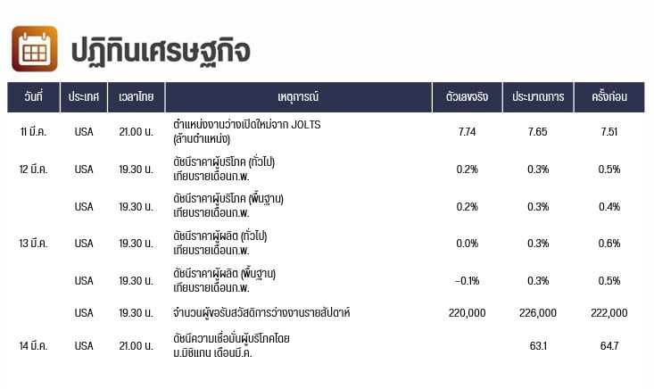 คืนนี้สหรัฐจะเปิดเผยดัชนีความเชื่อมั่นผู้บริโภคโดย ม.มิชิแกน เดือนมี.ค. ตลาดคาดว่าจะปรับตัวลงสู่ระดับ 63.1 จาก 64.7 ในเดือนก.พ.