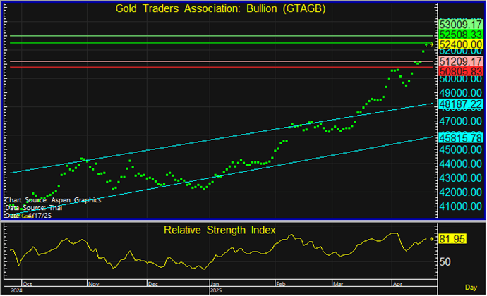 - ทองคำแท่งในประเทศสูงสุด 52,550 บาท