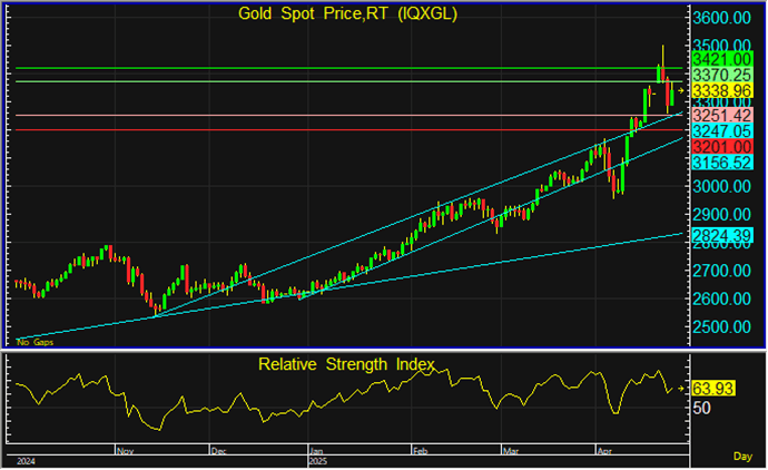 ราคาทองโลกขึ้นทดสอบแนวต้านที่ระดับ 3,500 ดอลลาร์ แต่ยังไม่สามารถทะลุขึ้นไปได้ จึงประเมินว่าราคาทองอาจปรับฐานลงแรงอีกครั้ง โดยหากปรับฐานลงจริงๆ มีแนวรับสำคัญที่อาจลงทดสอบอยู่ที่ระดับ 3,200-3,250 ดอลลาร์ โดยยังแนะนำใช้กลยุทธ์เชิงรับเข้าซื้อสะสมที่แนวรับดังกล่าว
