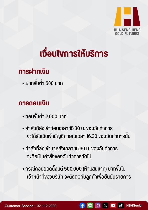 สามารถติดต่อเจ้าหน้าที่บริษัท ฮั่วเซ่งเฮง โกลด์ ฟิวเจอร์ส