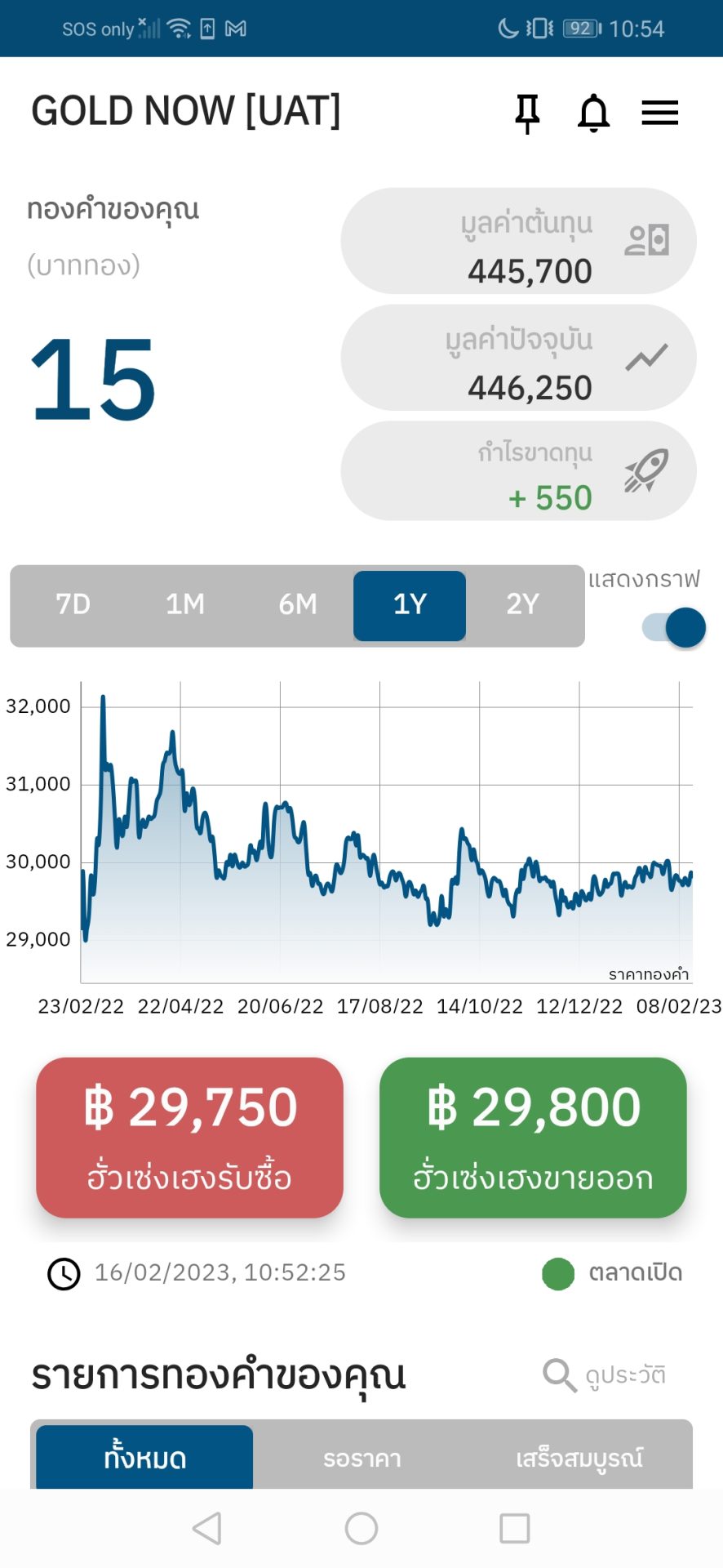 - เช็คทองว่ามีในพอร์ตไหมหากมีต้องให้เป็น 0 ก่อน (ขาย/ถอน)