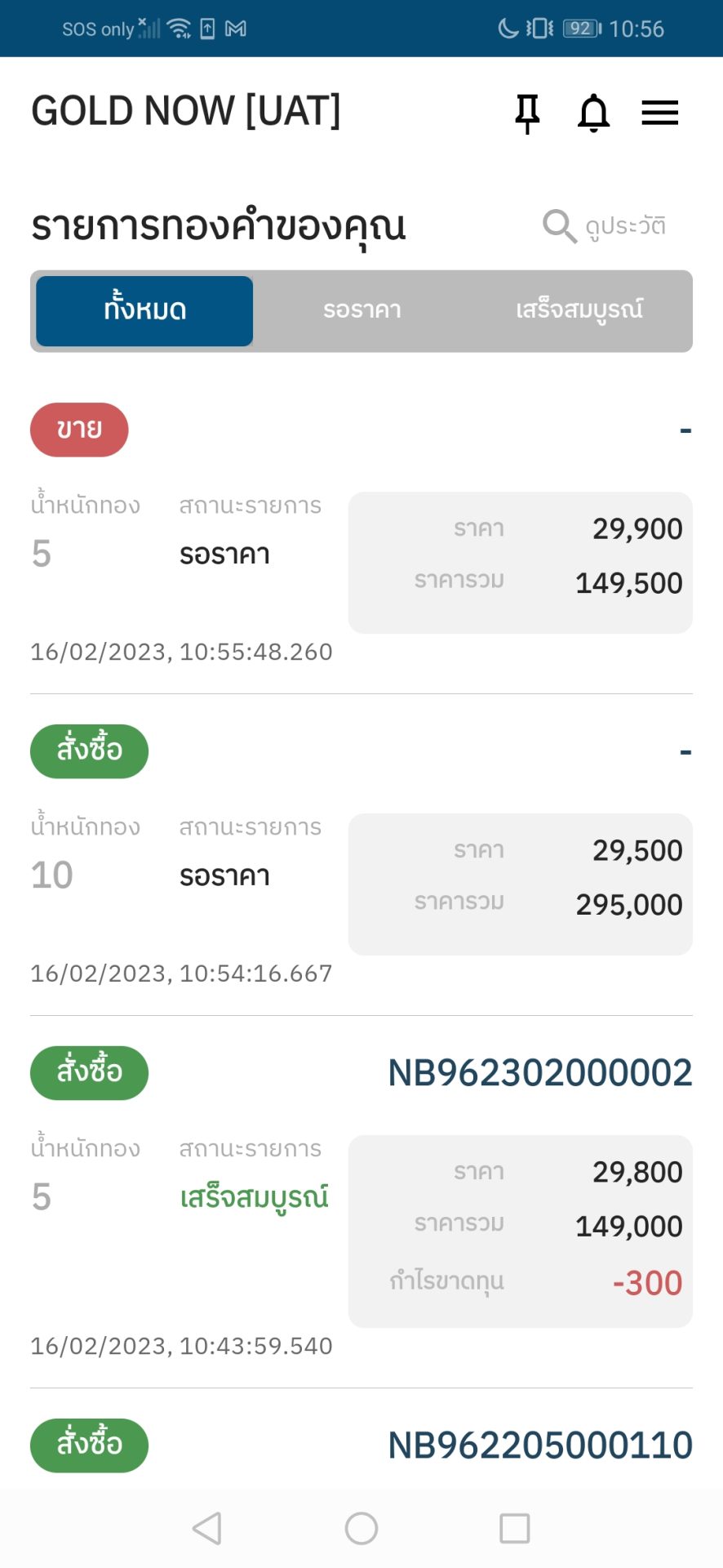 - ตรวจสอบเงินในบัญชีว่ามีเพียงพอกับราคาทองและค่าธรรมเนียมหรือไม่
