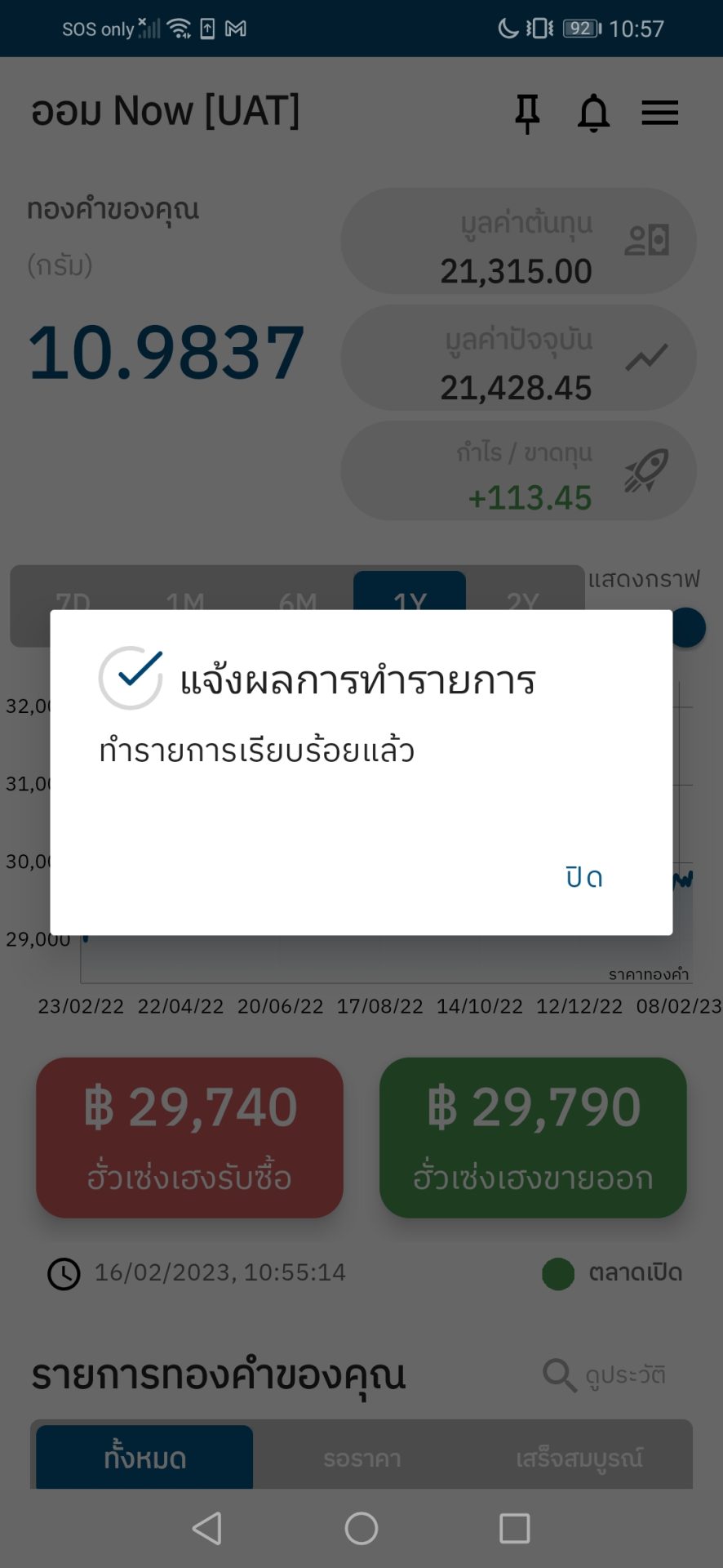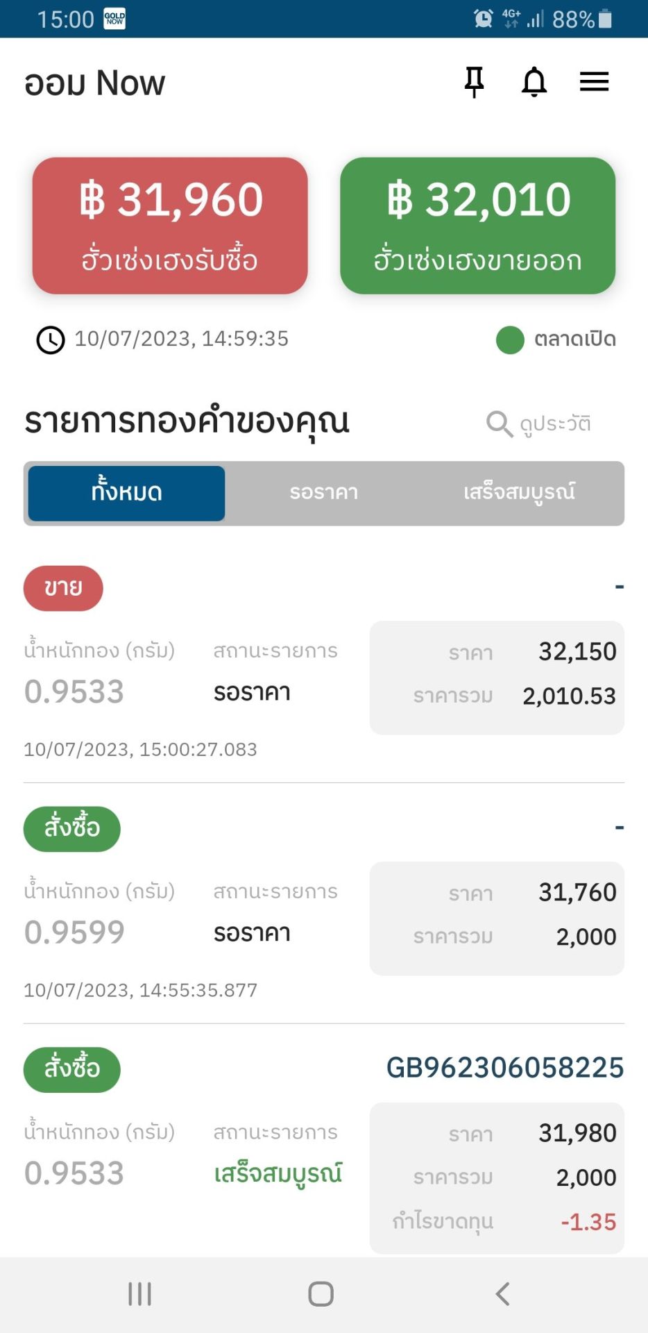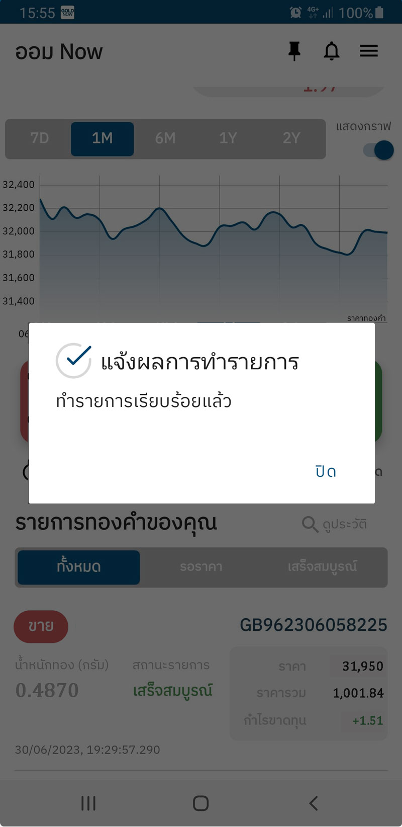 ทำให้การทำรายการขายทองอาจเกิดความล่าช้า แต่หากสถานะรายการขึ้นว่า