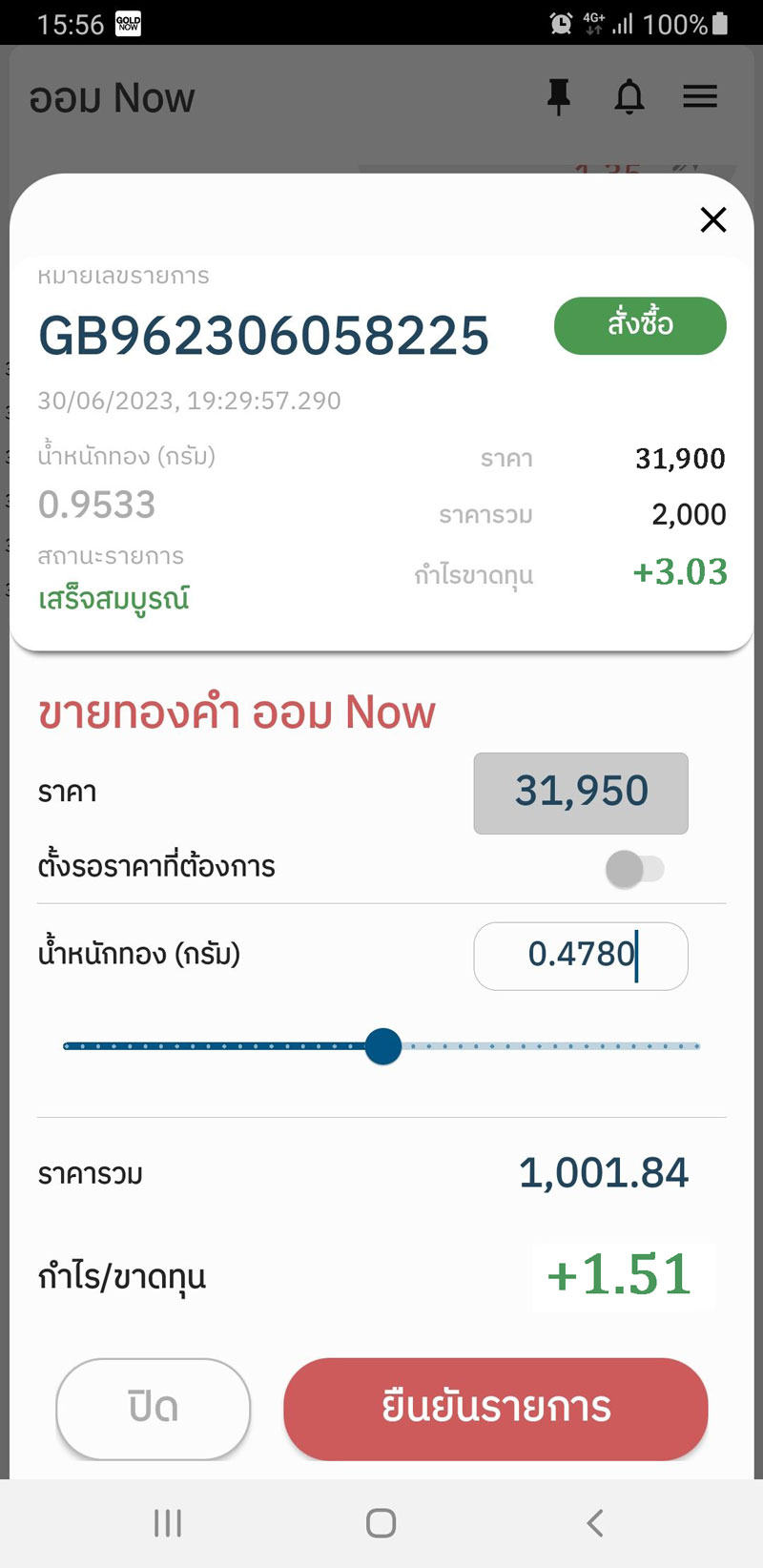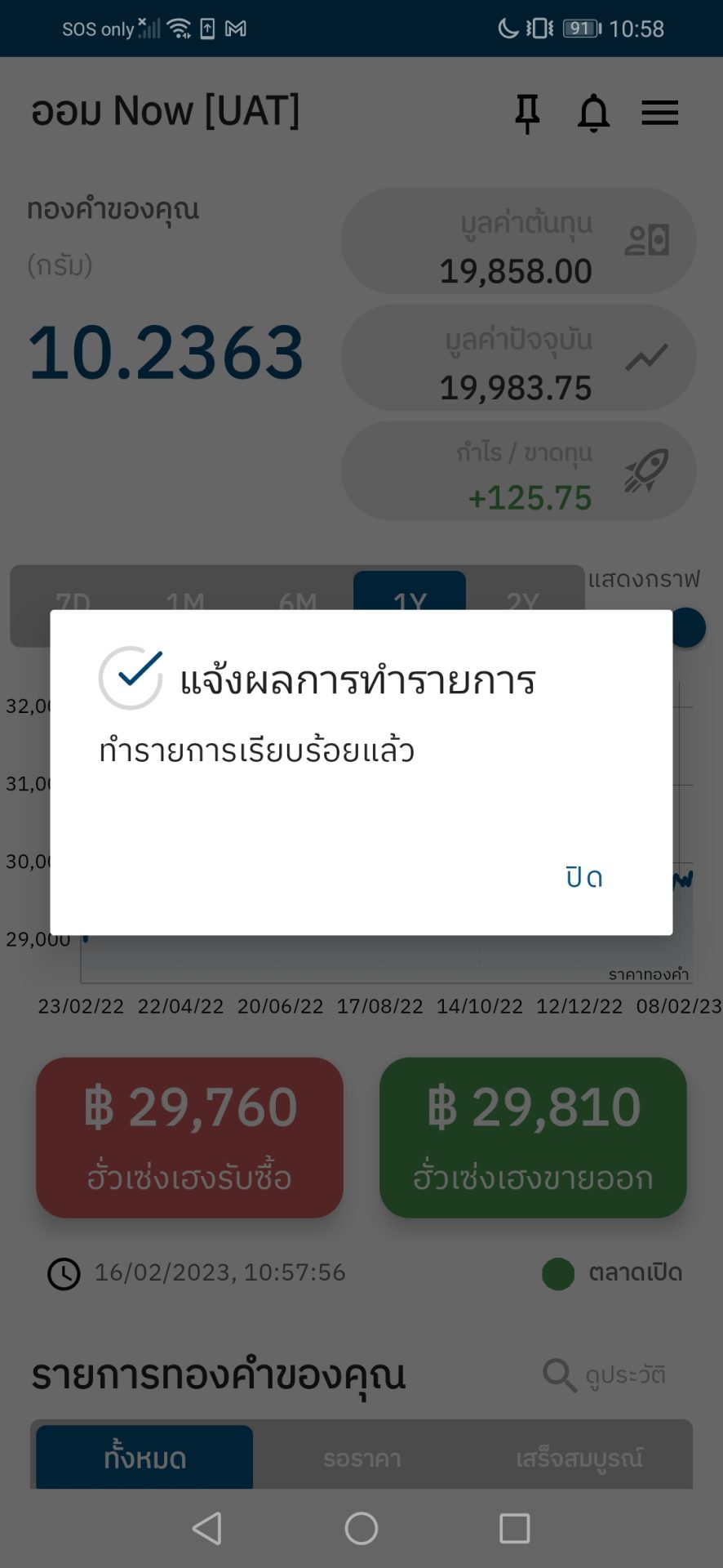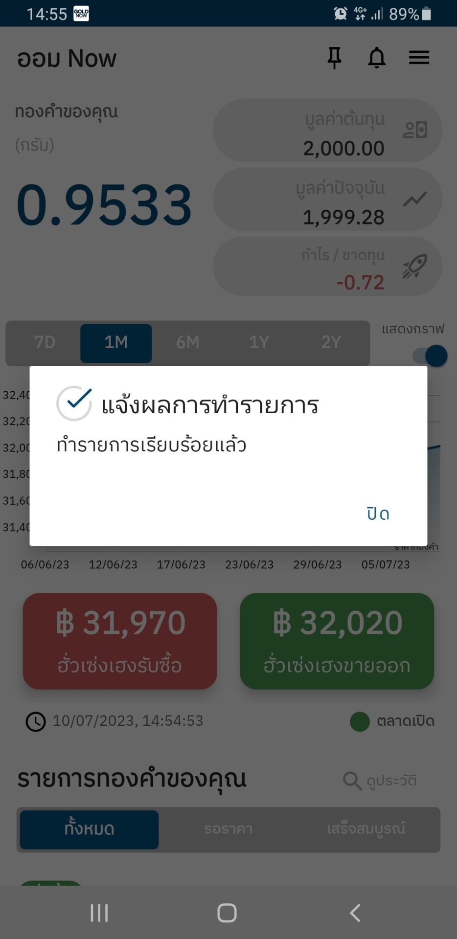 ทำให้การทำรายการขายทองอาจเกิดความล่าช้า แต่หากสถานะรายการขึ้นว่า