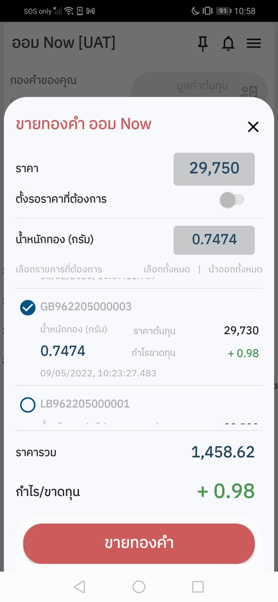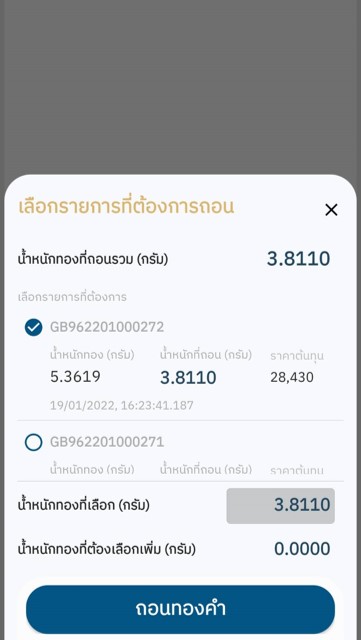 และให้คุณเลือกรายการที่ต้องการขายหรือถอนเป็นทองคำแท่งได้ตามต้องการ