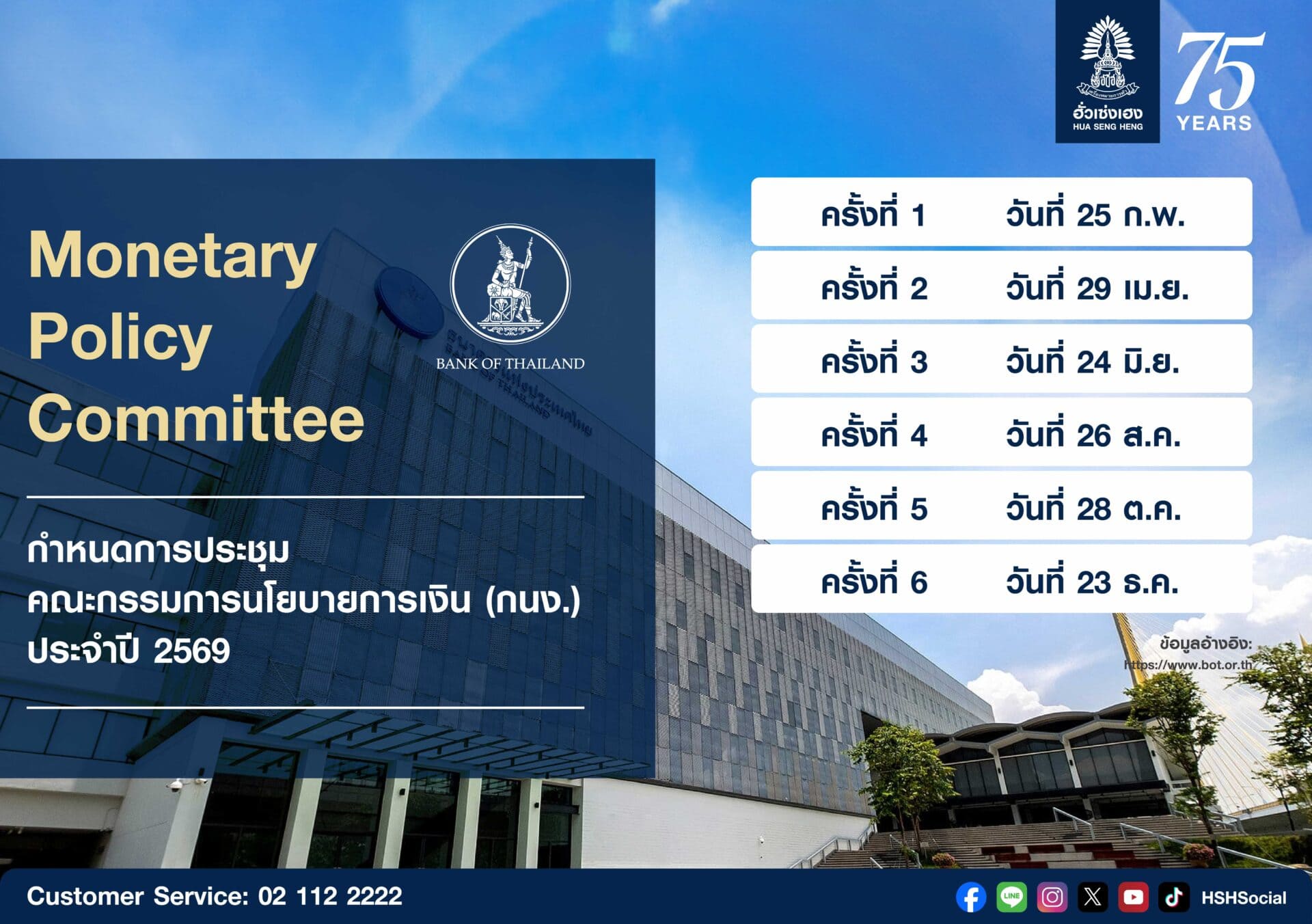 ดาวน์โหลดกำหนดการคณะกรรมการนโยบายการเงิน (กนง.) ปี 2569
