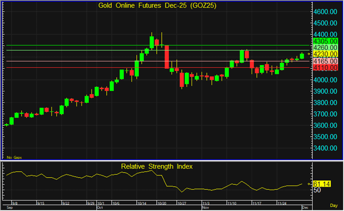 ราคา GOZ25 อาจยังมีแนวโน้มฟื้นตัวขึ้นต่อ แม้จะมีแนวต้านสำคัญที่ระดับ 4,260 ดอลลาร์ จึงกลับมาแนะนำ Wait and See รอดูแนวโน้มการเคลื่อนตัวในช่วงต้นสัปดาห์นี้ก่อน