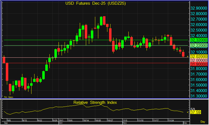 ราคา USDZ25 อาจสามารถฟื้นตัวกลับจากแนวรับสำคัญที่ระดับ 32.00 บาท จึงแนะนำรอเปิด Long จากแนวรับดังกล่าว โดยมีเป้าหมายทำกำไรที่ระดับ 32.22 บาท และตัดขาดทุนหากราคาหลุดแนวรับที่ระดับ 31.90 บาทลงไป
