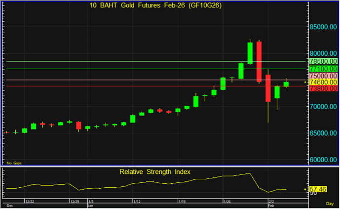 แนวต้าน : 77,100 และ 78,500 บาท