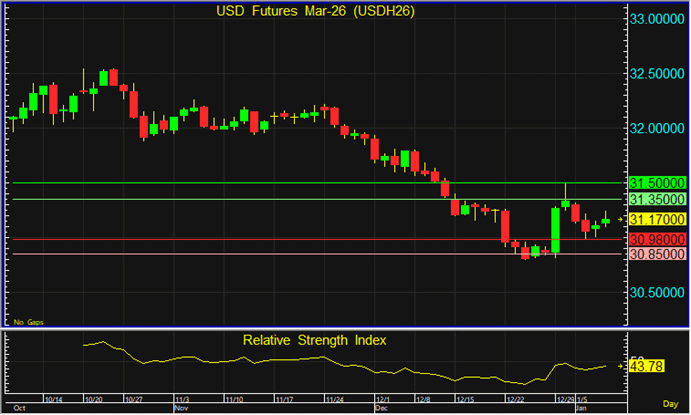 ราคา USDH26 อาจยังเหลือ Upside จึงแนะนำรอเปิด Short จากแนวต้านที่ระดับ 31.35 บาท โดยมีเป้าหมายทำกำไรที่ระดับ 30.98 บาท และตัดขาดทุนหากราคาทะลุแนวต้านที่ระดับ 31.50 บาทขึ้นไป