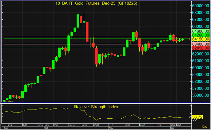 ราคา GF10Z25 ฟื้นตัวขึ้นมา แต่อาจยังติดแนวต้านที่ระดับ 64,200 บาท จึงยังคงแนะนำรอเปิด Short จากแนวต้านดังกล่าว โดยมีเป้าหมายทำกำไรที่ระดับ 63,400 บาท และตัดขาดทุนหากราคาทะลุแนวต้านที่ระดับ 64,600 บาทขึ้นไป