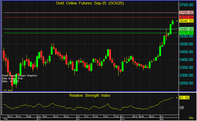 ราคา GOU25 ยังคงมีเร่งตัวขึ้น แต่ด้วยราคาที่อยู่ในระดับสูงแล้ว จึงยังคงแนะนำรอเปิด Short จากแนวต้านที่ระดับ 3,670 ดอลลาร์ โดยมีเป้าทำกำไรที่ระดับ 3,595 ดอลลาร์ และตัดขาดทุนหากราคาทะลุแนวต้านที่ 3,700 ดอลลาร์ขึ้นไป