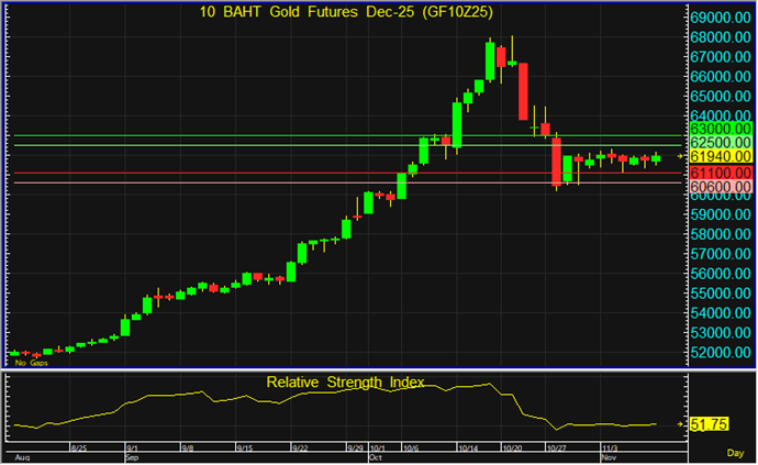 เช้านี้ราคา GF10Z25 เริ่มฟื้นตัวขึ้นอีกครั้ง แม้จะมีแนวต้านสำคัญที่ระดับ 62,500 บาท แต่แนะนำ Wait and See รอดูแนวโน้มในช่วงเช้านี้ก่อน