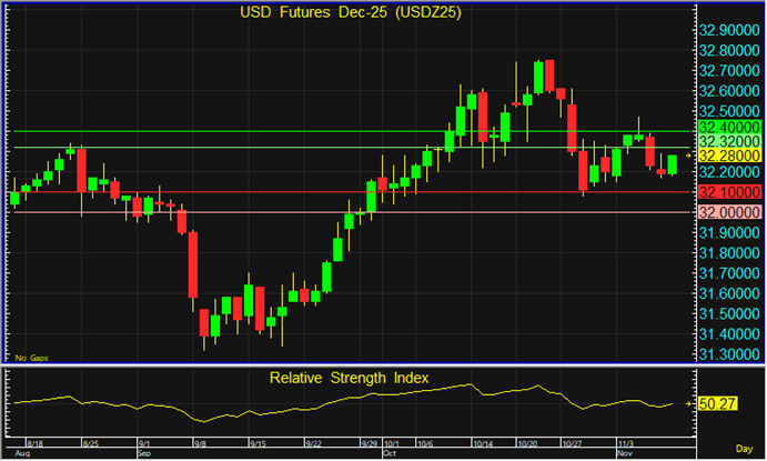 ราคา USDZ25 อาจยังเคลื่อนตัวในกรอบ 32.10-32.32 บาท จึงแนะนำรอเปิด Long จากแนวรับที่ระดับ 32.10 บาท และเปิด Short หากราคาขึ้นทดสอบแนวต้านที่ระดับ 32.32 บาท