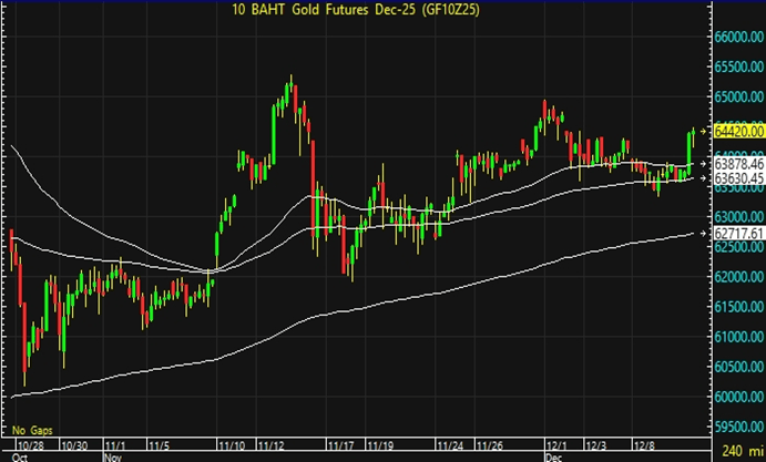 ราคา GF10Z25 อาจเริ่มเผชิญแรงขายจากแนวต้านที่ระดับ 64,500 บาท จึงแนะนำรอเปิด Short จากแนวต้านดังกล่าว โดยมีเป้าหมายทำกำไรที่ระดับ 63,800 บาท และตัดขาดทุนหากราคาทะลุแนวต้านที่ระดับ 65,000 บาทขึ้นไป
