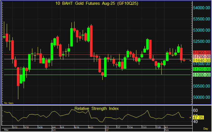 ราคา GF10Q25 ที่หลุดแนวรับลงมา ประเมินว่าอาจมีการฟื้นตัวสั้นๆ จึงแนะนำรอเปิด Short จากแนวต้านที่ 51,700 บาท โดยมีเป้าทำกำไรที่ 51,250 บาท และตัดขาดทุนหากราคาทะลุแนวต้านที่ 51,900 บาทขึ้นไป