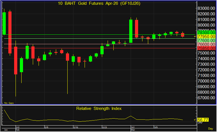 แนวต้าน : 77,600 และ 78,300 บาท