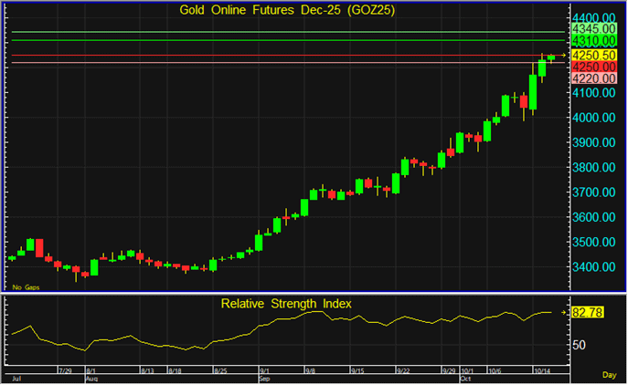แนวต้าน : 4,310 และ 4,345 ดอลลาร์