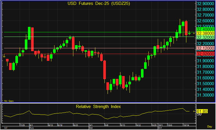 ราคา USDZ25 ยังคงมีแนวโน้มปรับฐานลง จึงแนะนำรอเปิด Short จากแนวต้านที่ระดับ 32.32 บาท โดยมีเป้าหมายทำกำไรที่ระดับ 32.12 บาท และตัดขาดทุนหากราคาทะลุแนวต้านที่ระดับ 32.40 บาทขึ้นไป