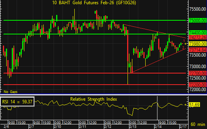 ราคาทองโลกที่ฟื้นตัวขึ้น อาจยังผ่านแนวต้านที่ 74,400 บาท ขึ้นไปได้ยาก จึงแนะนำรอเปิด Short จากแนวต้านดังกล่าว โดยมีเป้าทำกำไรที่ 72,700 บาท และตัดขาดทุนหากทะลุแนวต้านที่ 75,000 บาทขึ้นไป