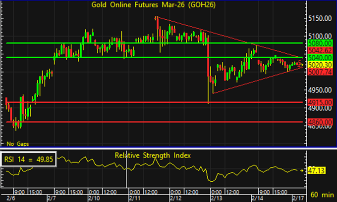 ราคาทองโลกอยู่ในระยะปรับฐานลง หากระหว่างวันมีการฟื้นตัวขึ้นใกล้บริเวณ 5,040 ดอลลาร์ แนะนำรอเปิด Short จากแนวต้านดังกล่าว โดยมีเป้าทำกำไรที่ 4,915 ดอลลาร์ และตัดขาดทุนหากทะลุแนวต้านที่ 5,080 ดอลลาร์ขึ้นไป