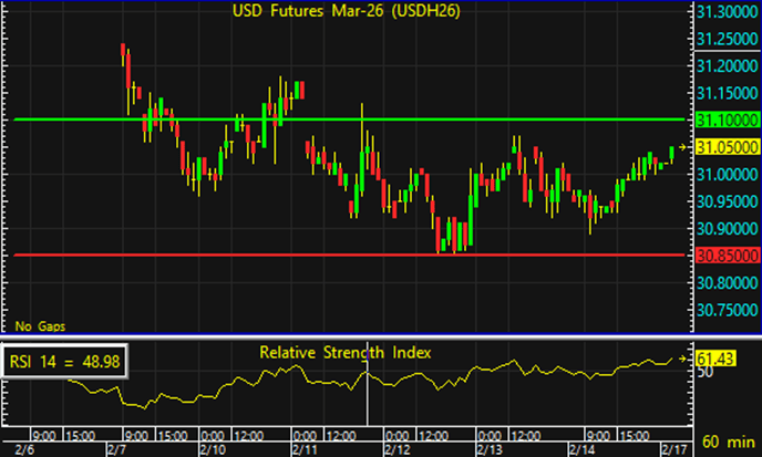 ค่าเงินบาทยังผ่านแนวต้านขึ้นไปได้ยาก โดยประเมินว่าราคาอาจกลับมาเคลื่อนไหวในกรอบ 30.85-31.10 จึงแนะนำเปิด Long หากราคาลงทดสอบแนวรับที่ 30.85 บาท และเปิด Short หากราคาขึ้นทดสอบแนวต้านที่ 31.10 บาท